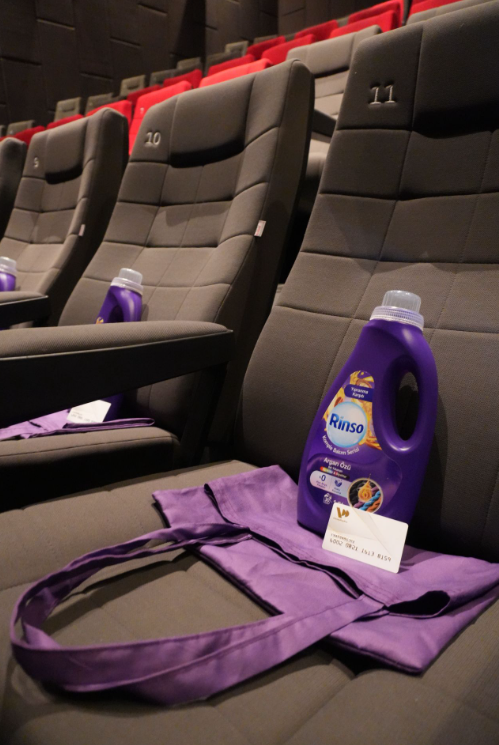Samimi atmosferiyle dikkat çeken etkinlikte, katılımcılar sinema salonunu adeta bir iyilik atölyesine dönüştürdü. Organizasyon süresince misafirlere Rinso ürünleri ve indirim kartları hediye edilirken, fuaye alanındaki dijital ekranlar da marka renkleriyle etkinliğe özel olarak tasarlandı.